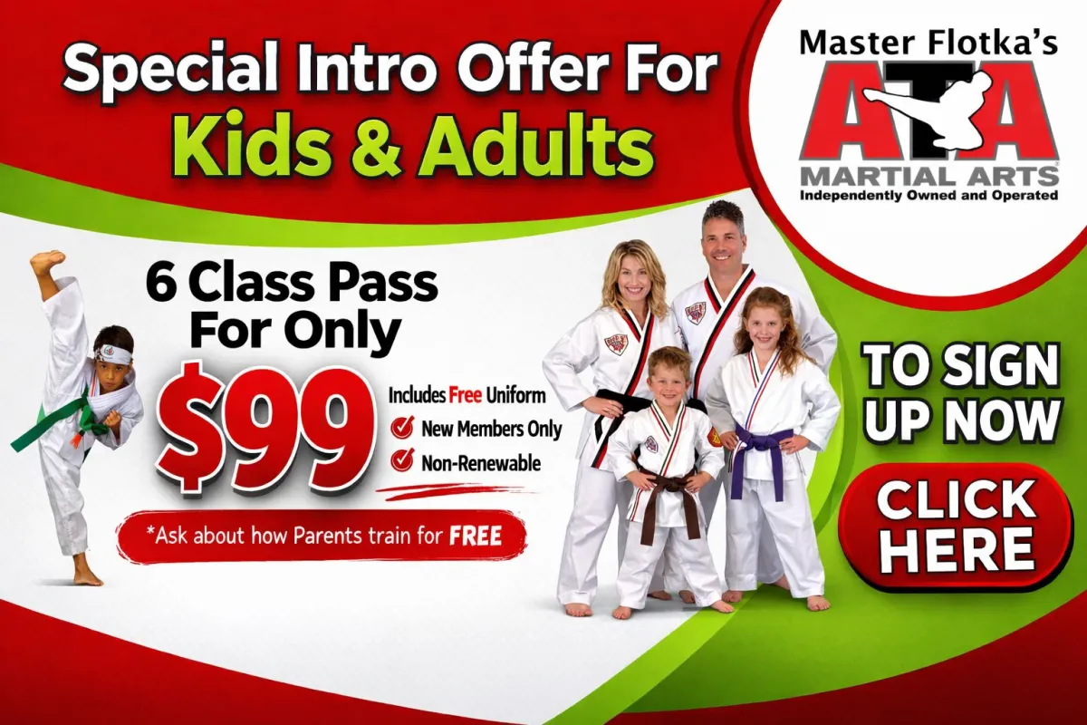 Master Flotka and his team teach traditional Taekwondo while helping students grow stronger in body, mind, and character. Classes focus on building confidence, discipline, leadership, and real martial arts skill in a supportive environment. Every student receives individual attention and is encouraged to develop a positive mental attitude and set meaningful goals. Through structured training and strong values, students learn lessons that carry far beyond the mat.